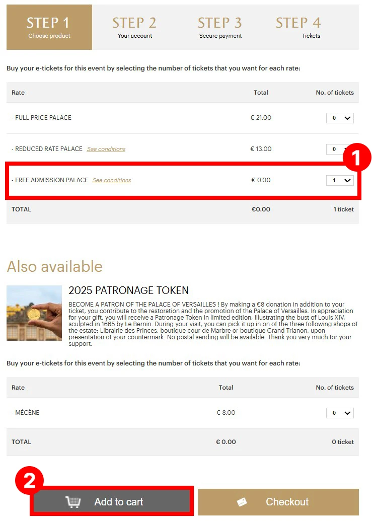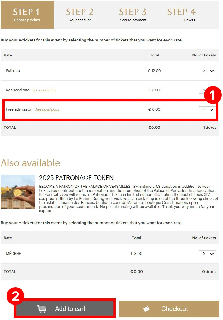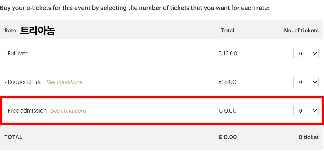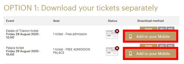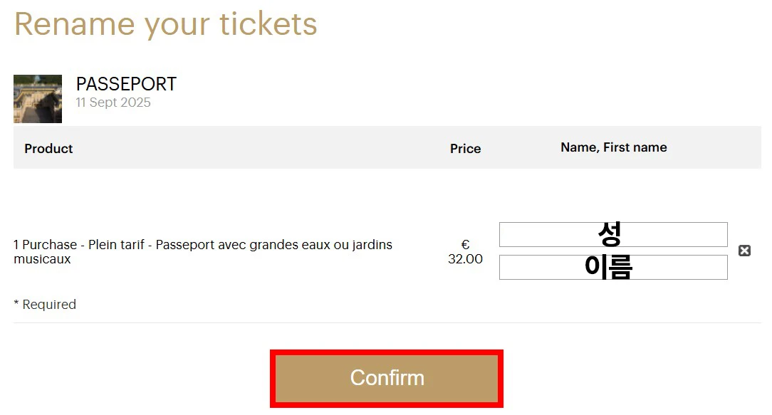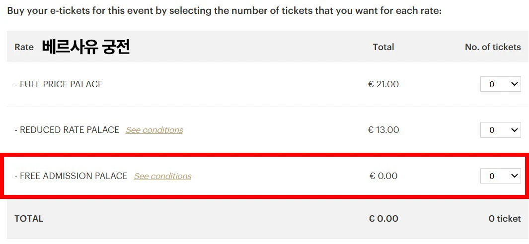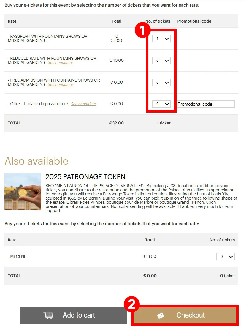 본인이 원하는 티켓을 선택해 주세요. 뮤지컬 가든은 정원에서 음악이 흘러나오며, 분수 쇼는 바로크 음악의 리듬에 맞춰 분수 쇼를 진행하는 행사입니다.
