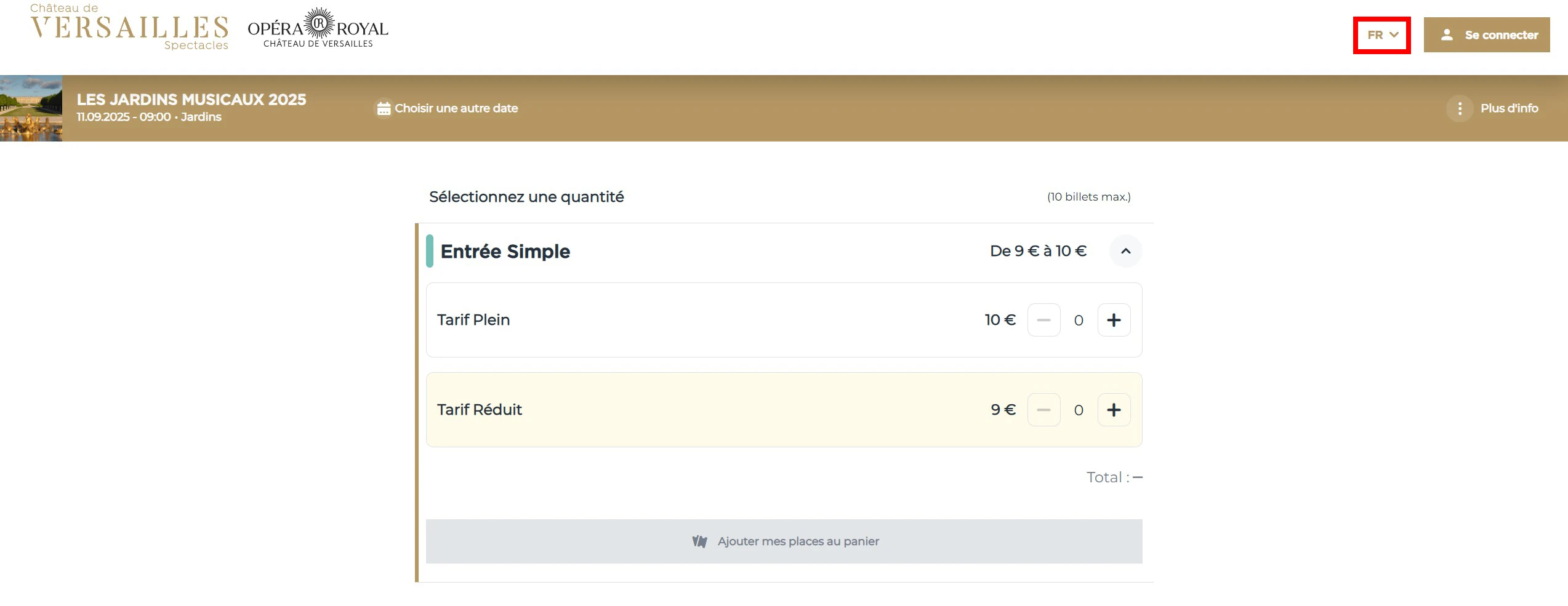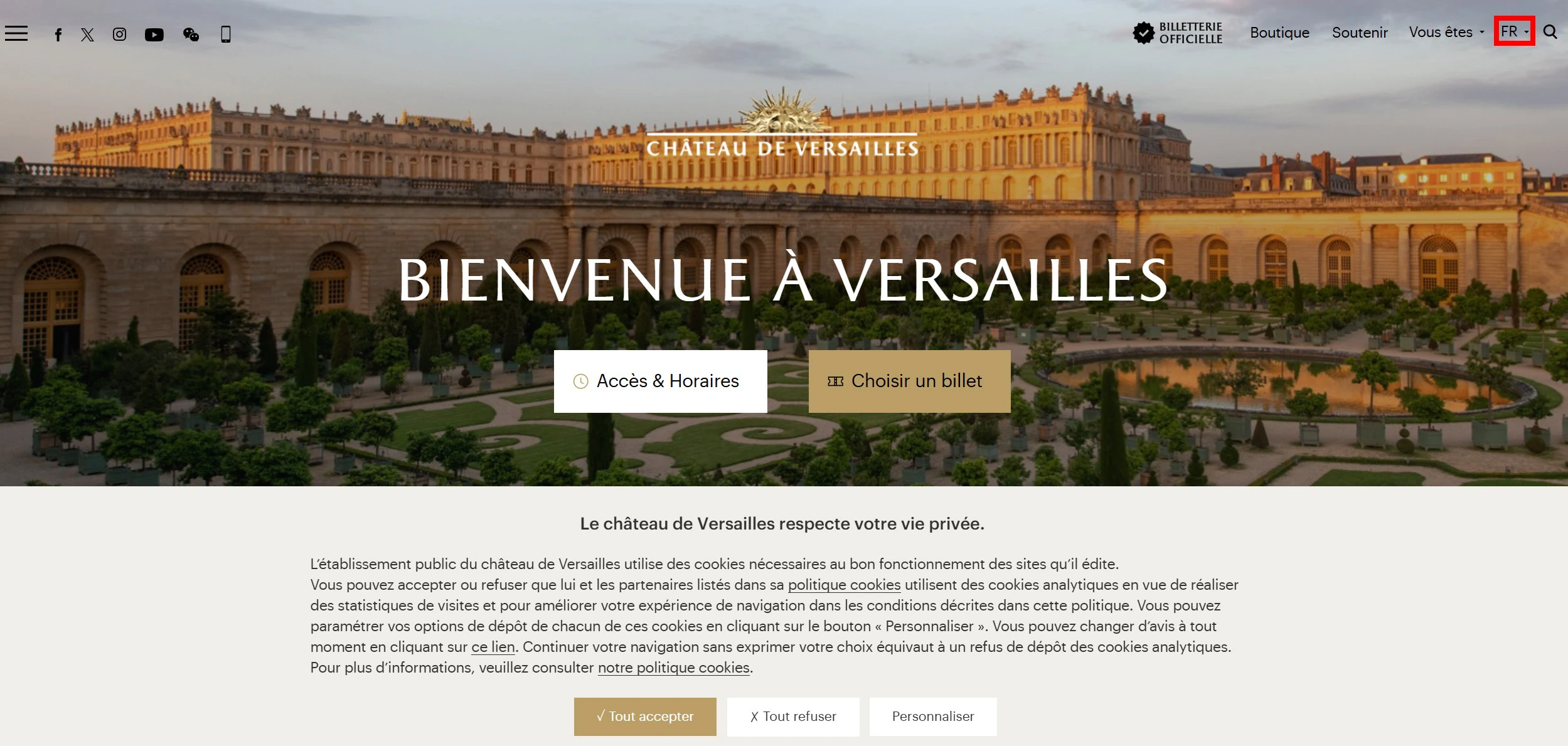 오른쪽 상단의 프랑스어(FR)를 영어(EN)로 변경해 주세요.