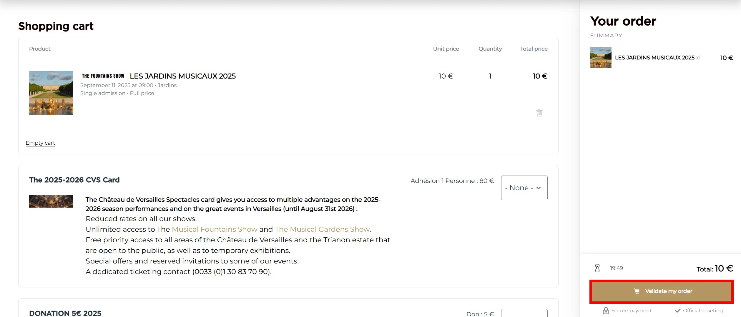 가장 오른쪽 하단 'Validate my order' 버튼을 눌러주세요.