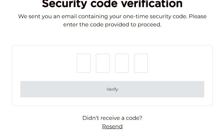 방금 작성하신 이메일로 네 자리의 코드가 올 거예요. 그 번호를 기입한 후, 아래 'Verify' 버튼을 클릭해 주세요.