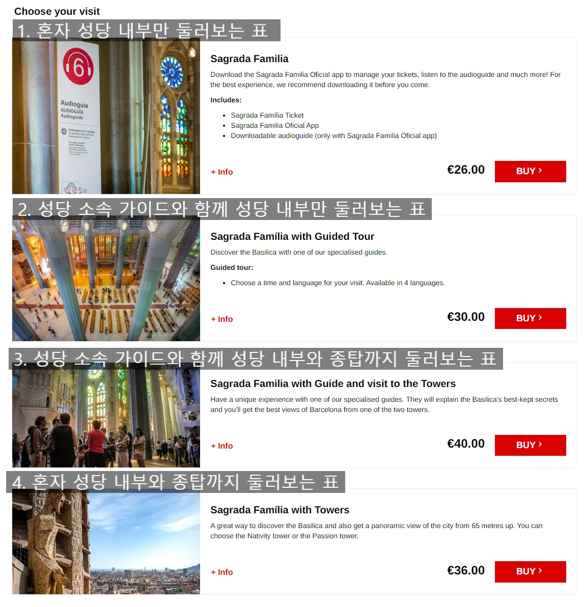 사그라다 파밀리아의 티켓은 4종류 입니다.