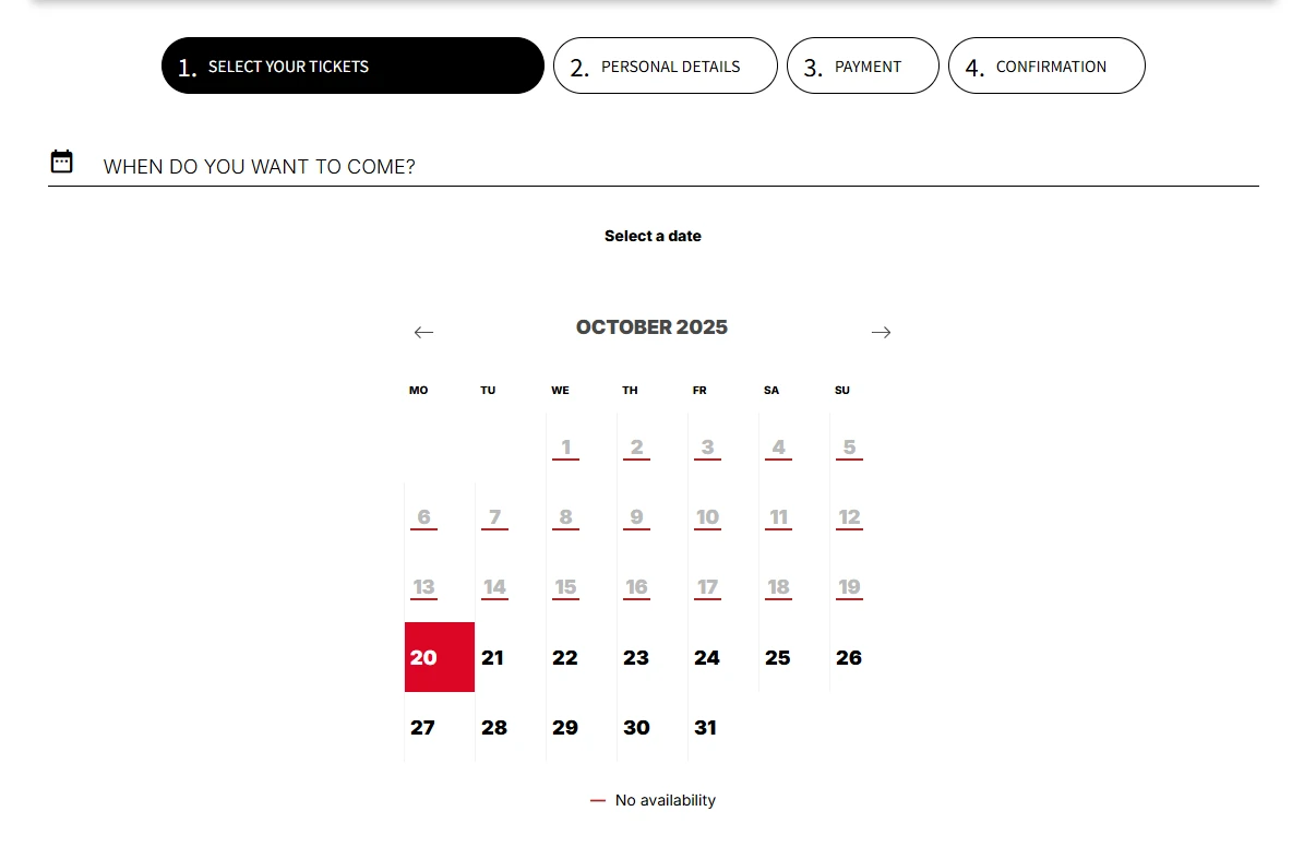 앞에서 티켓 종류를 선택하셨으면 이렇게 달력 화면이 나올텐데요,