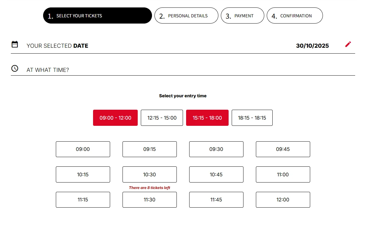 방문하실 날짜를 선택하셨으면, 입장하실 시간을 선택하시면 됩니다.