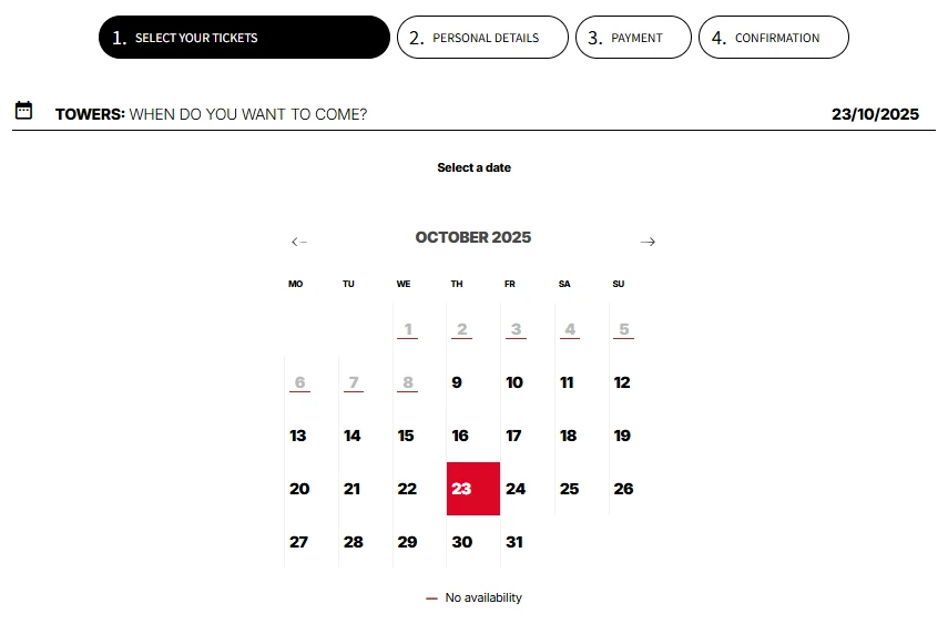 2. 장소 / 타워 입장 시간 선택