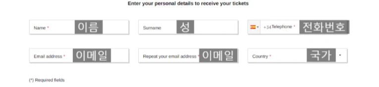 아래 사진을 참고하셔서 이름, 이메일, 전화번호, 국가를 작성하시면 됩니다.