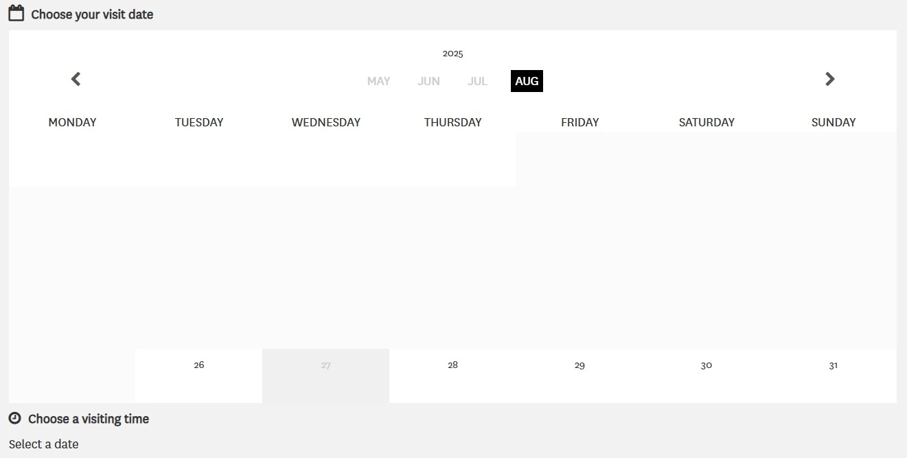 請選擇您希望參觀萬神殿的日期。