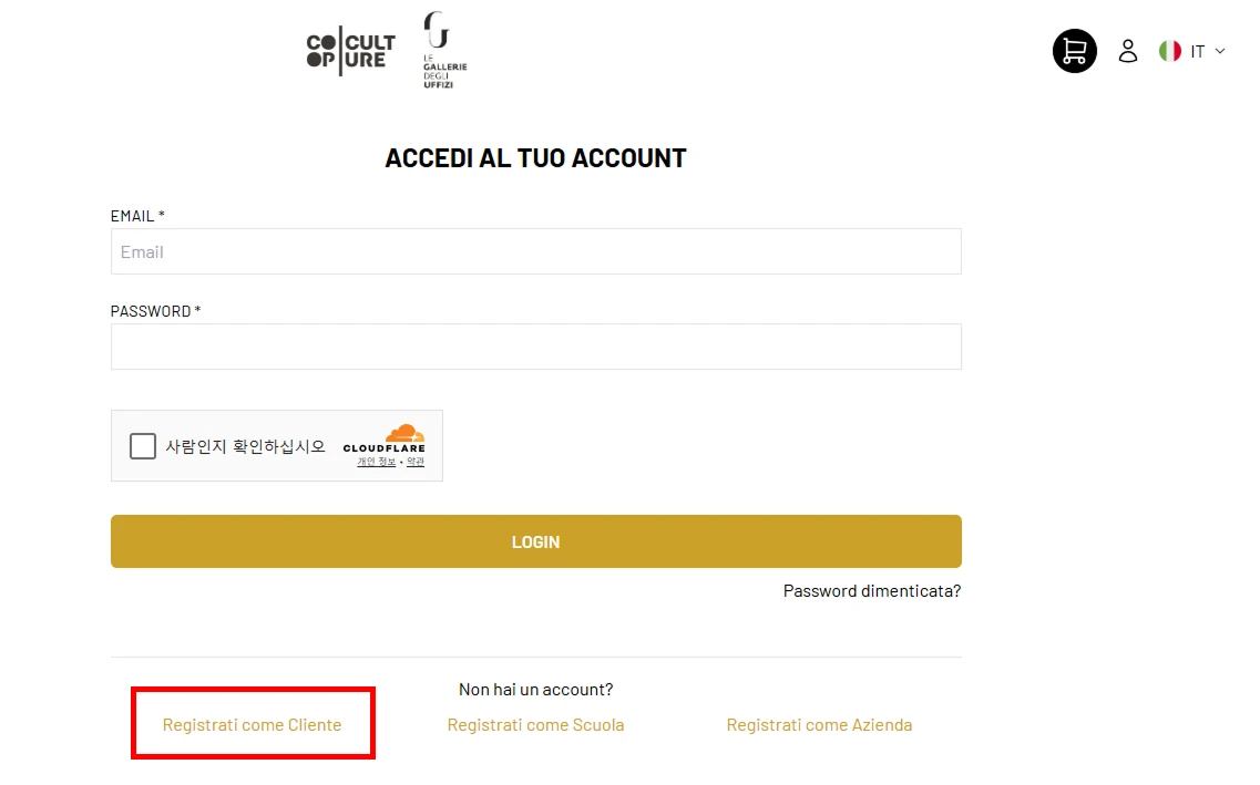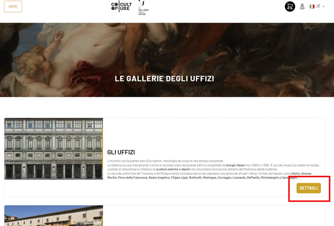 'Buy Online'을 누르셨다면, 변경된 우피치 공식 티켓 예매처인