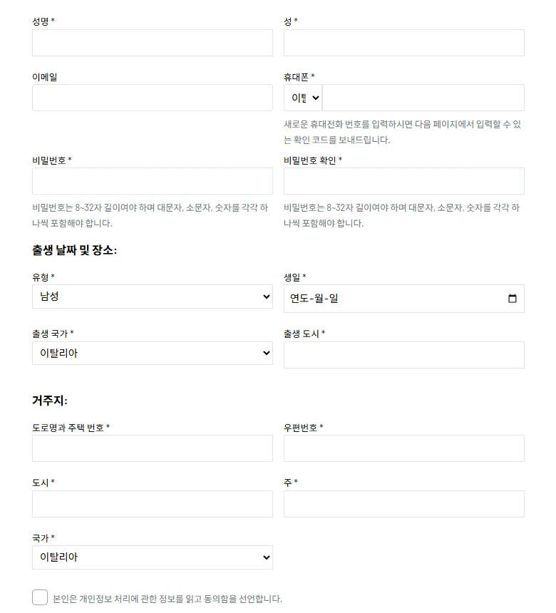 를 동일하게 입력해주시고, 당일에는 꼭