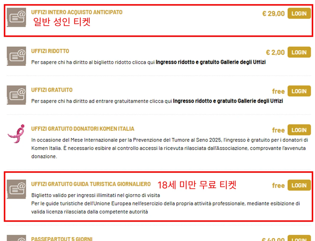 저희는 우피치 미술관만 입장하는 티켓을 구매해 볼게요.