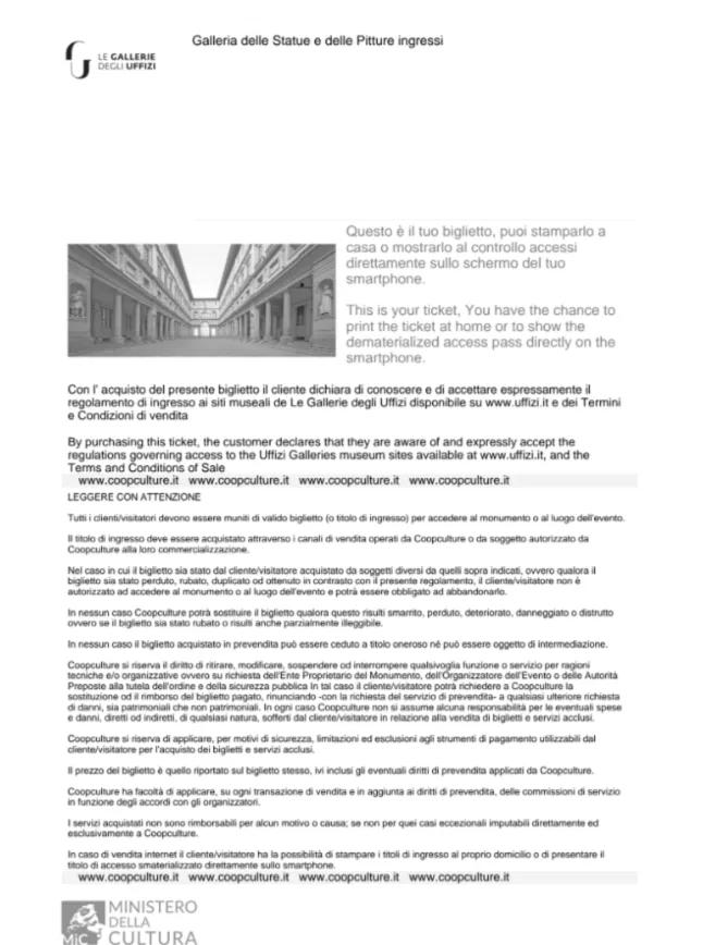 우피치 미술관 : 가장 왼쪽 티켓