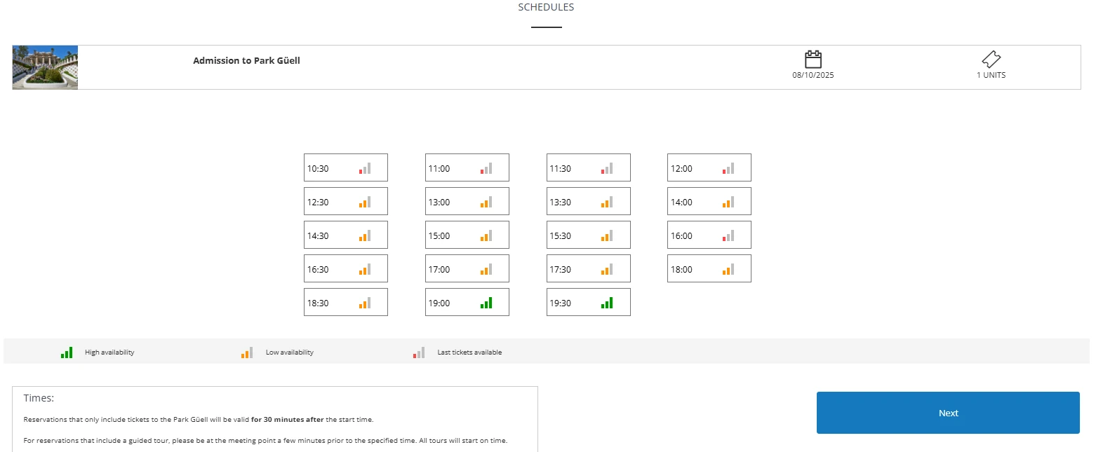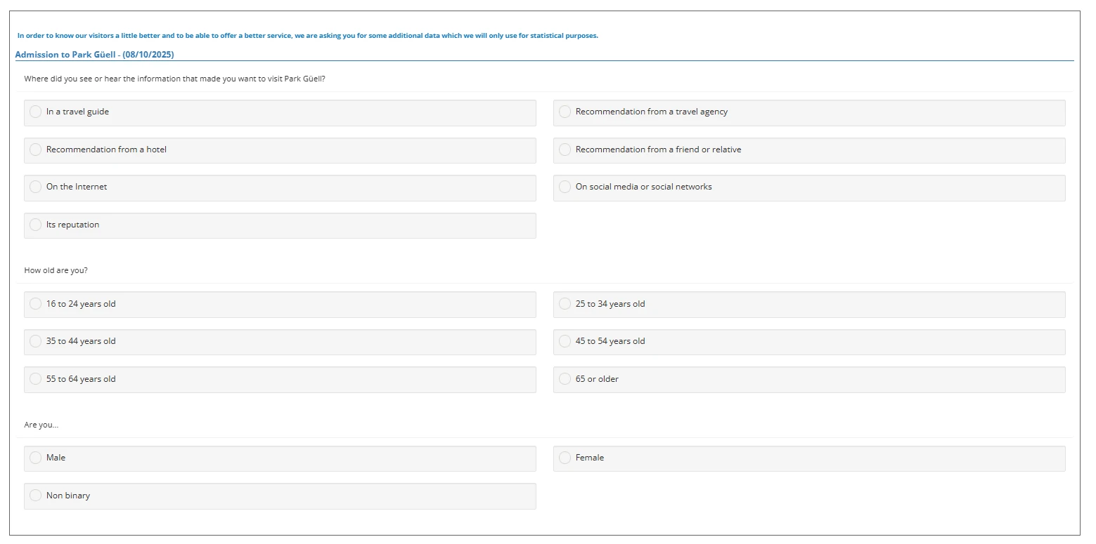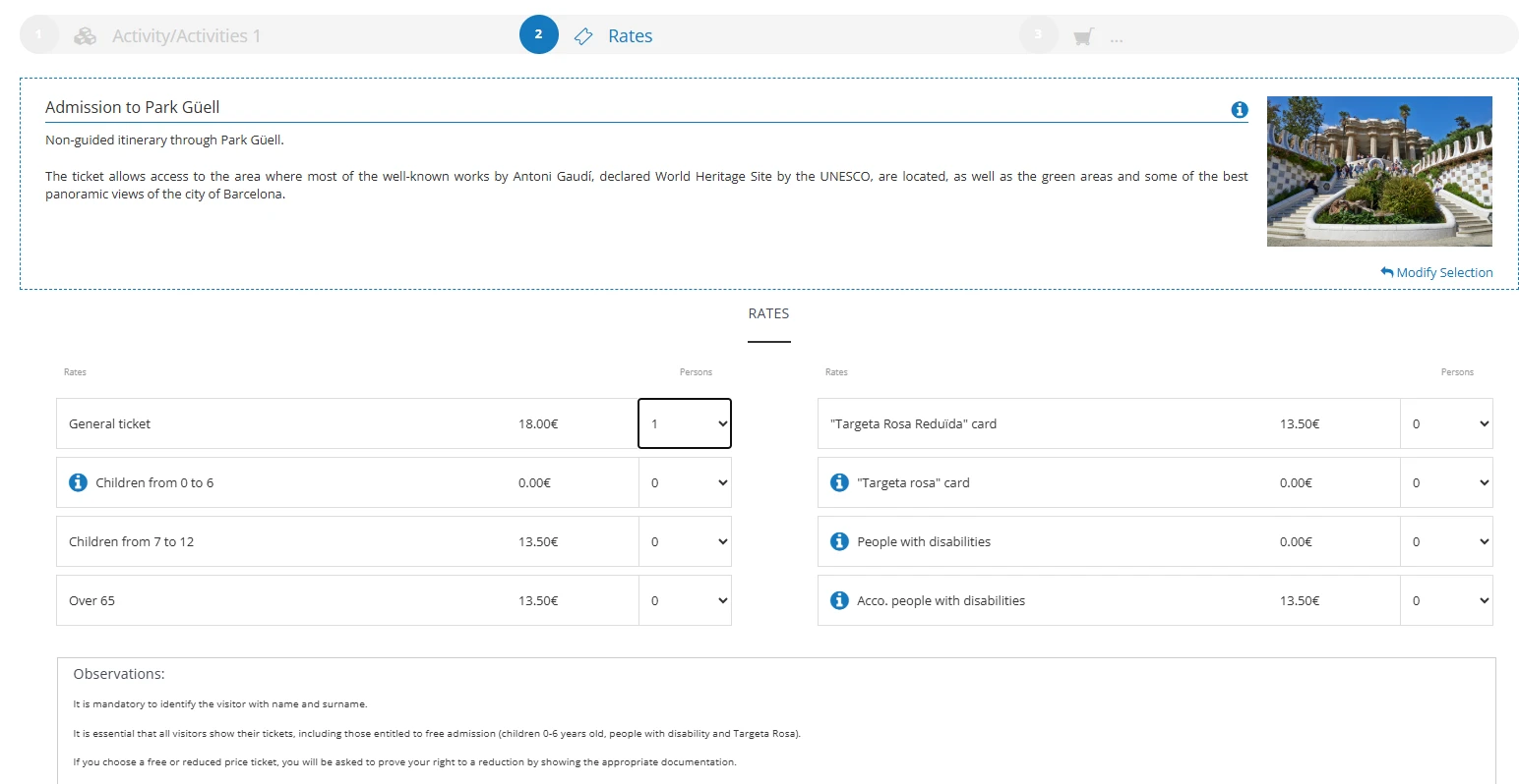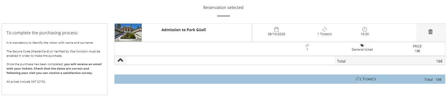 Purchase of tickets in the regulated area of Park Güell