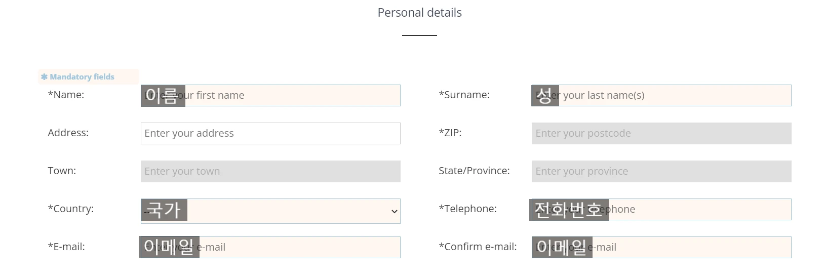 여권의 이름과 동일하게 적어주시면 됩니다!